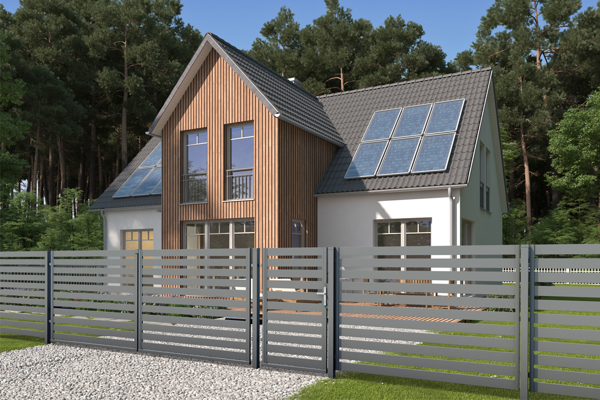 Double-leaf swing gate, Flat-pack fence, Szafir Element